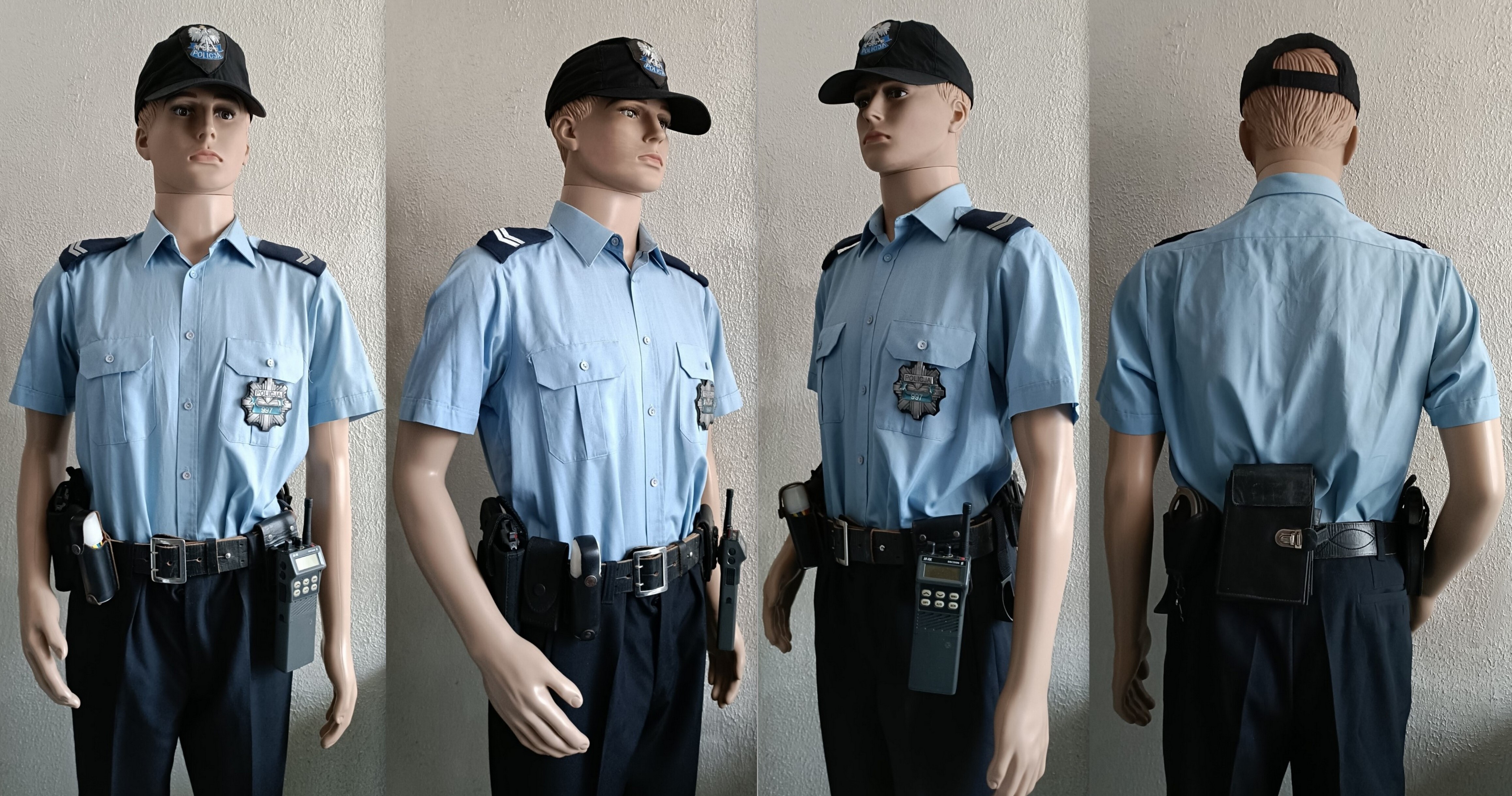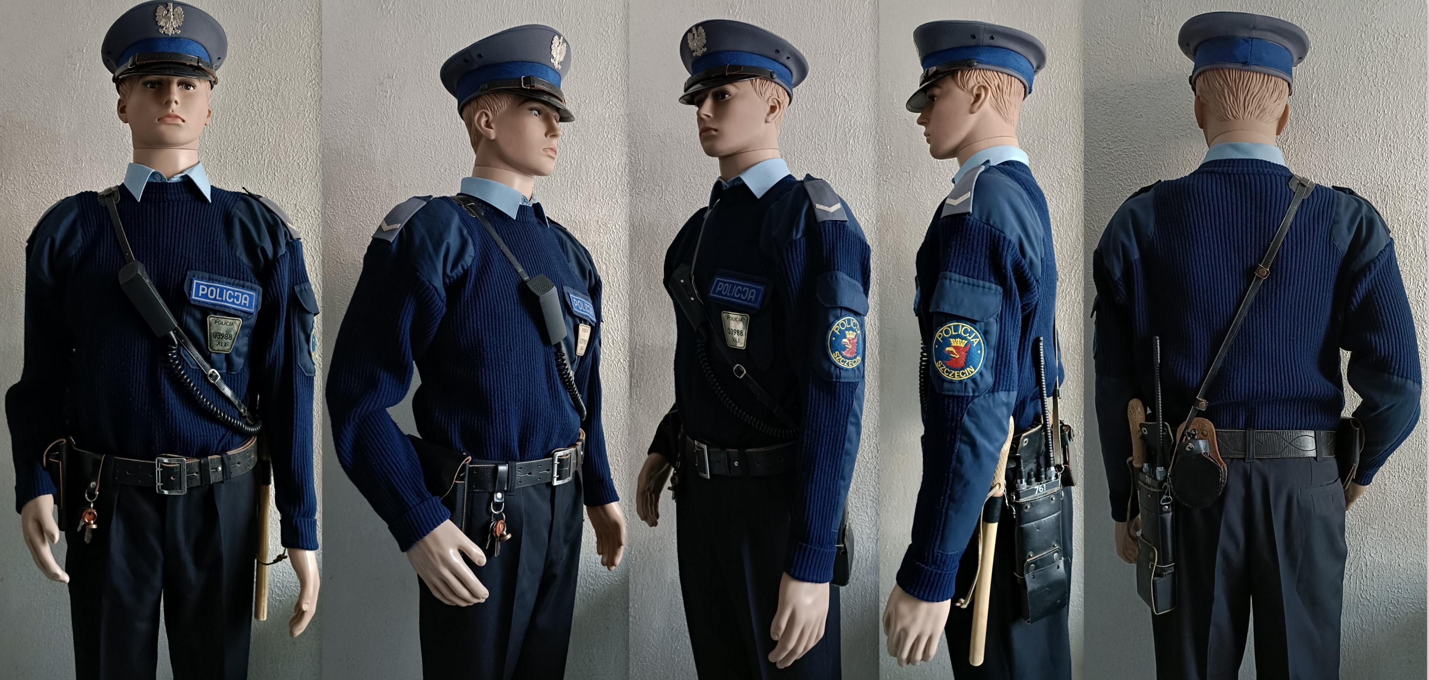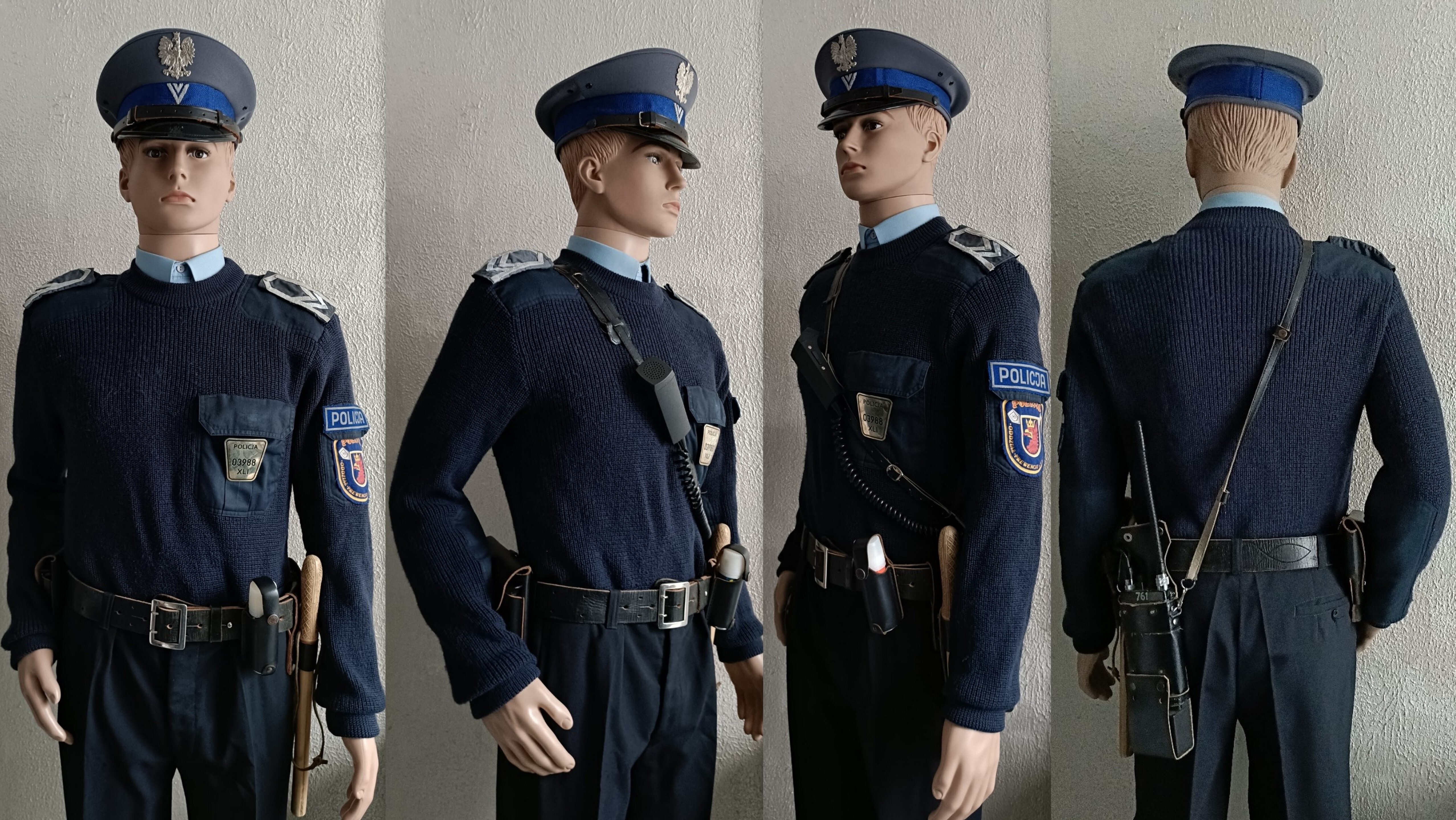 Sweter służbowy granatowy, lata 90. Sylwetka policjanta dzielnicowego KRP, policjanta Służby Patrolowo Interwencyjnej.
