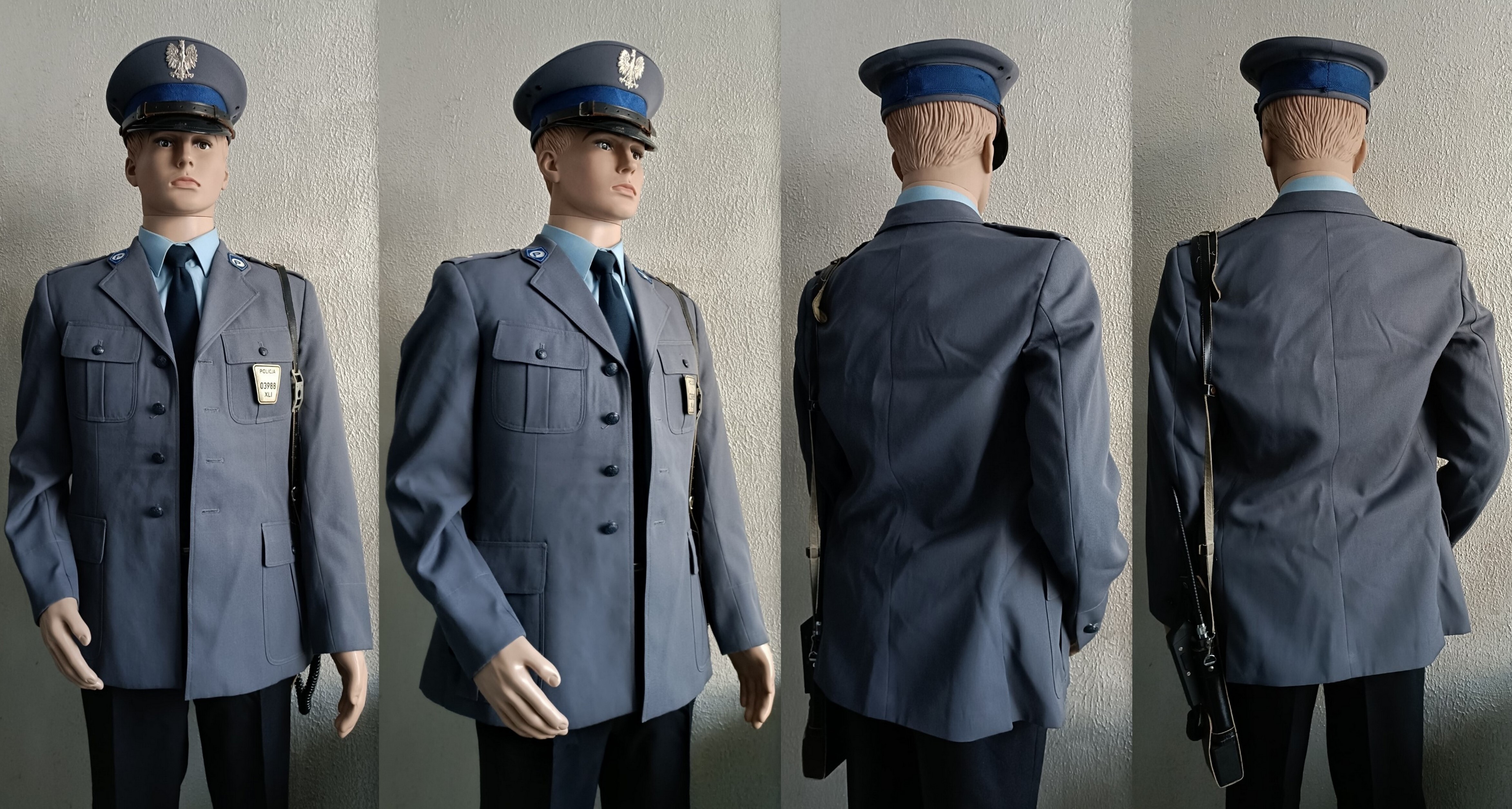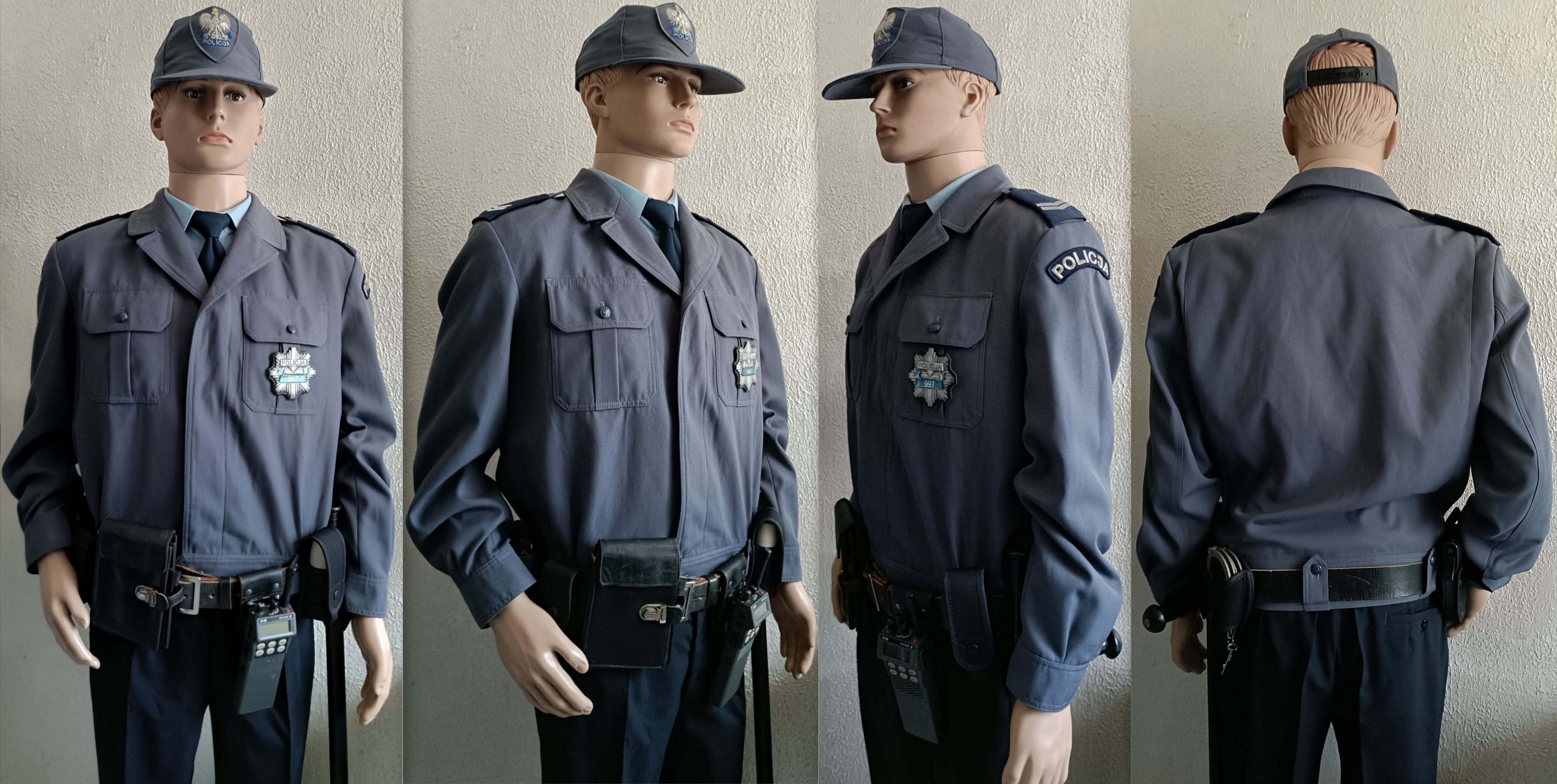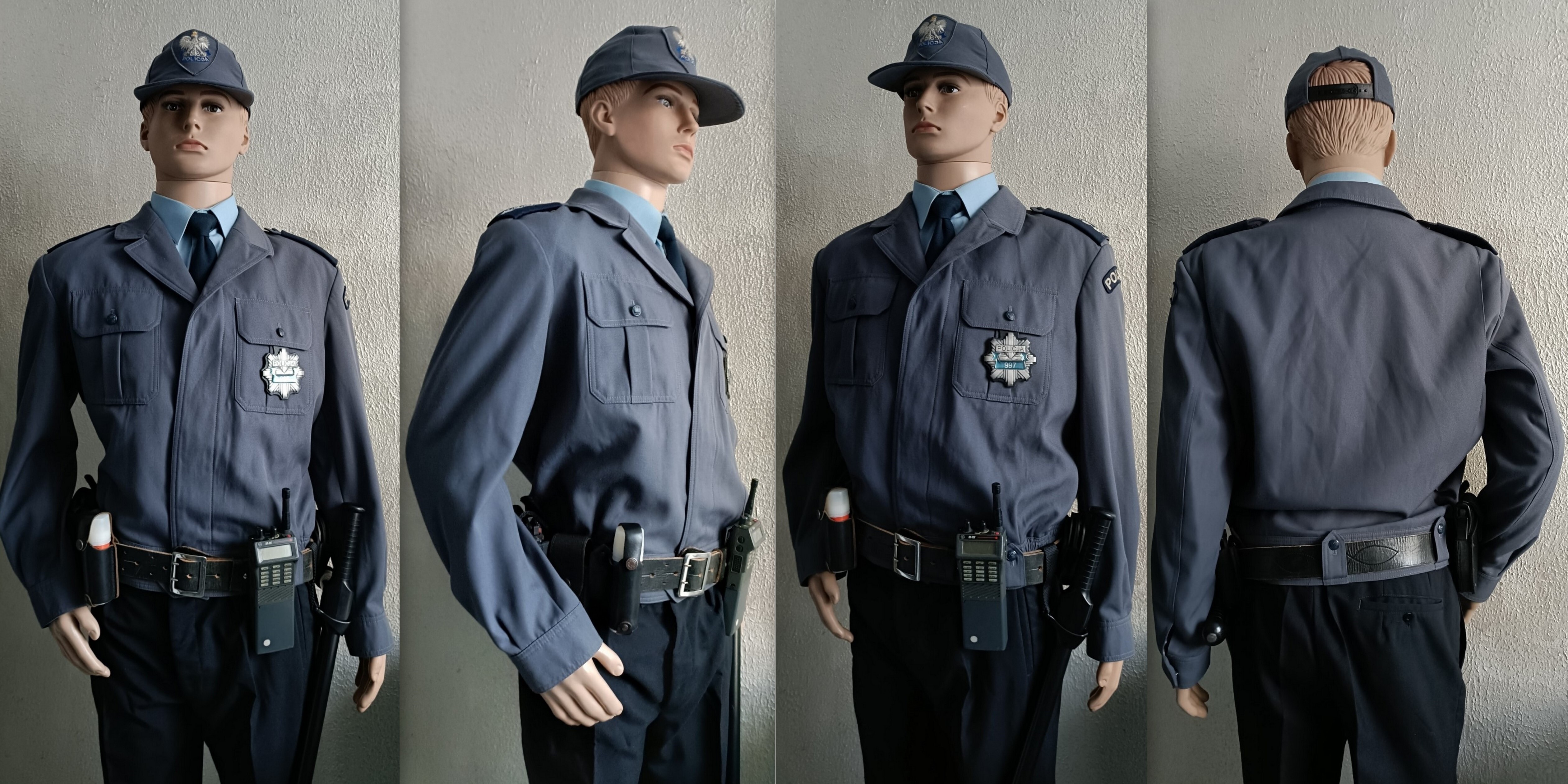 Sweter służbowy granatowy, lata 90. Sylwetka policjanta dzielnicowego KRP, policjanta Służby Patrolowo Interwencyjnej.