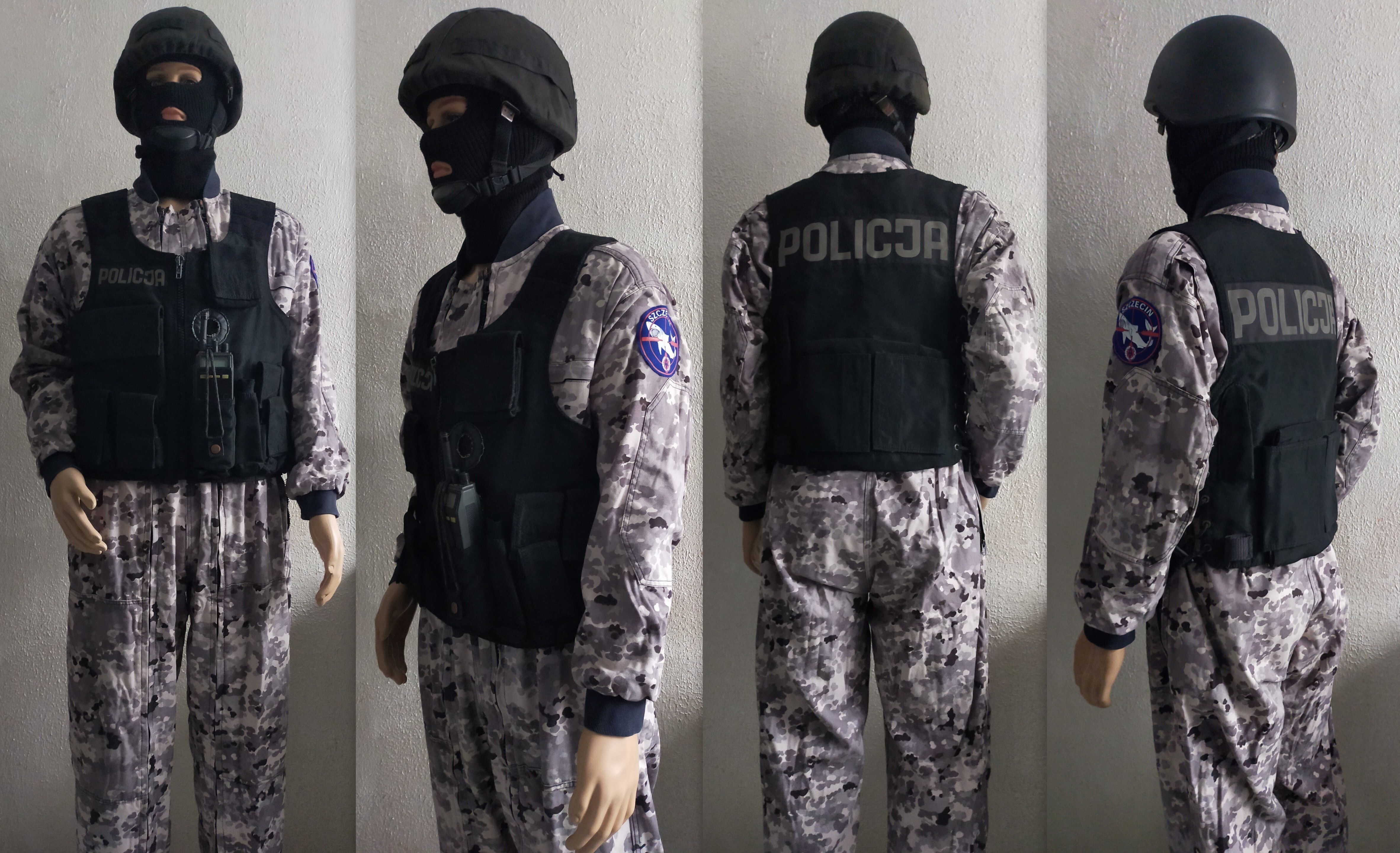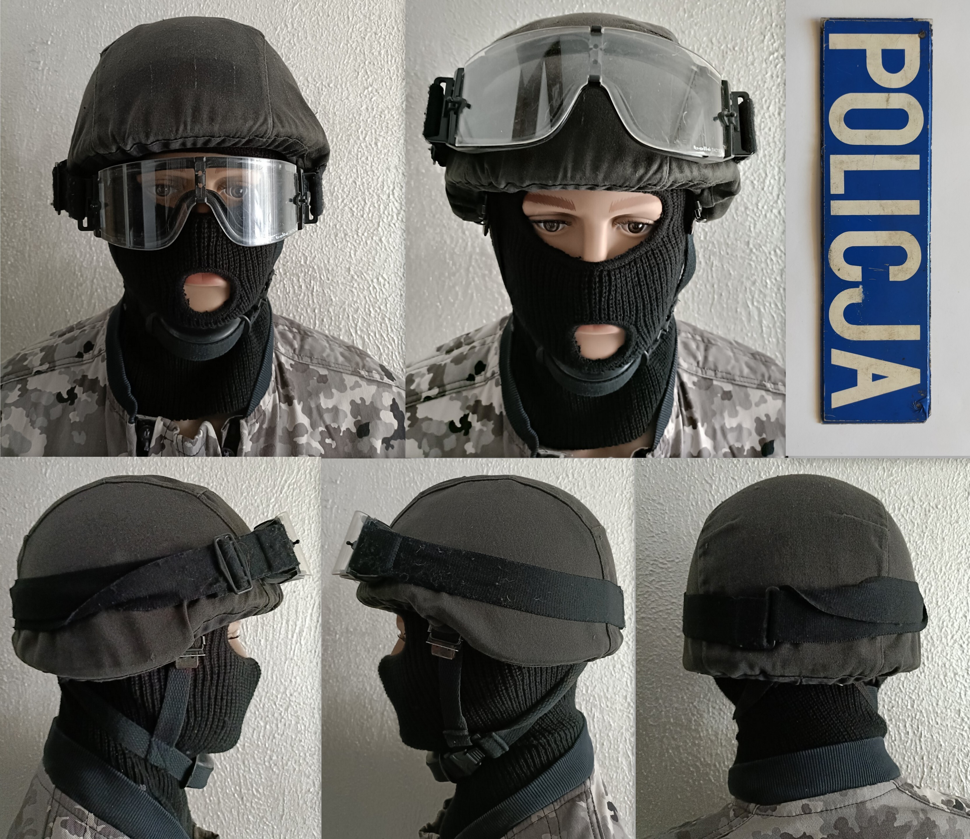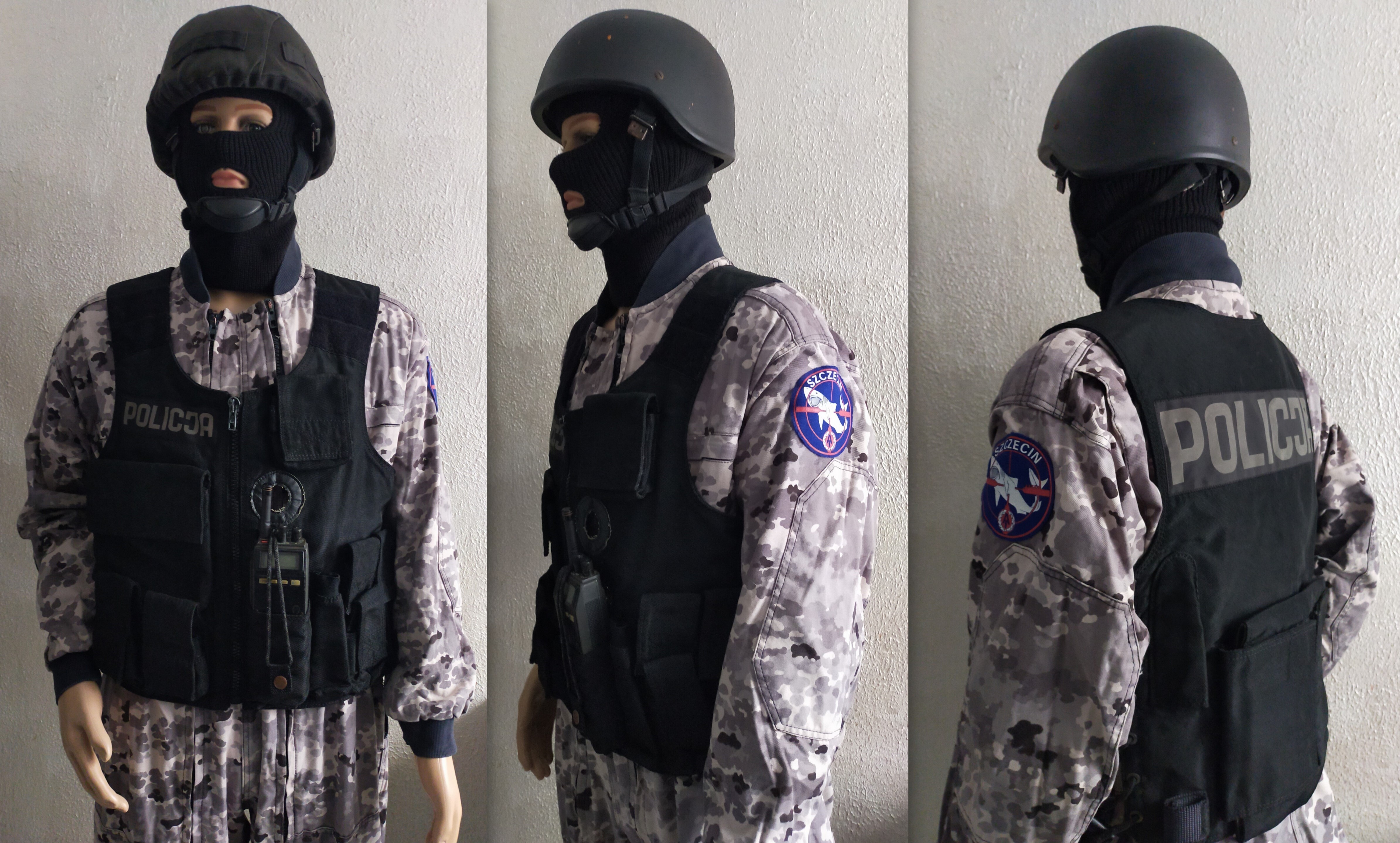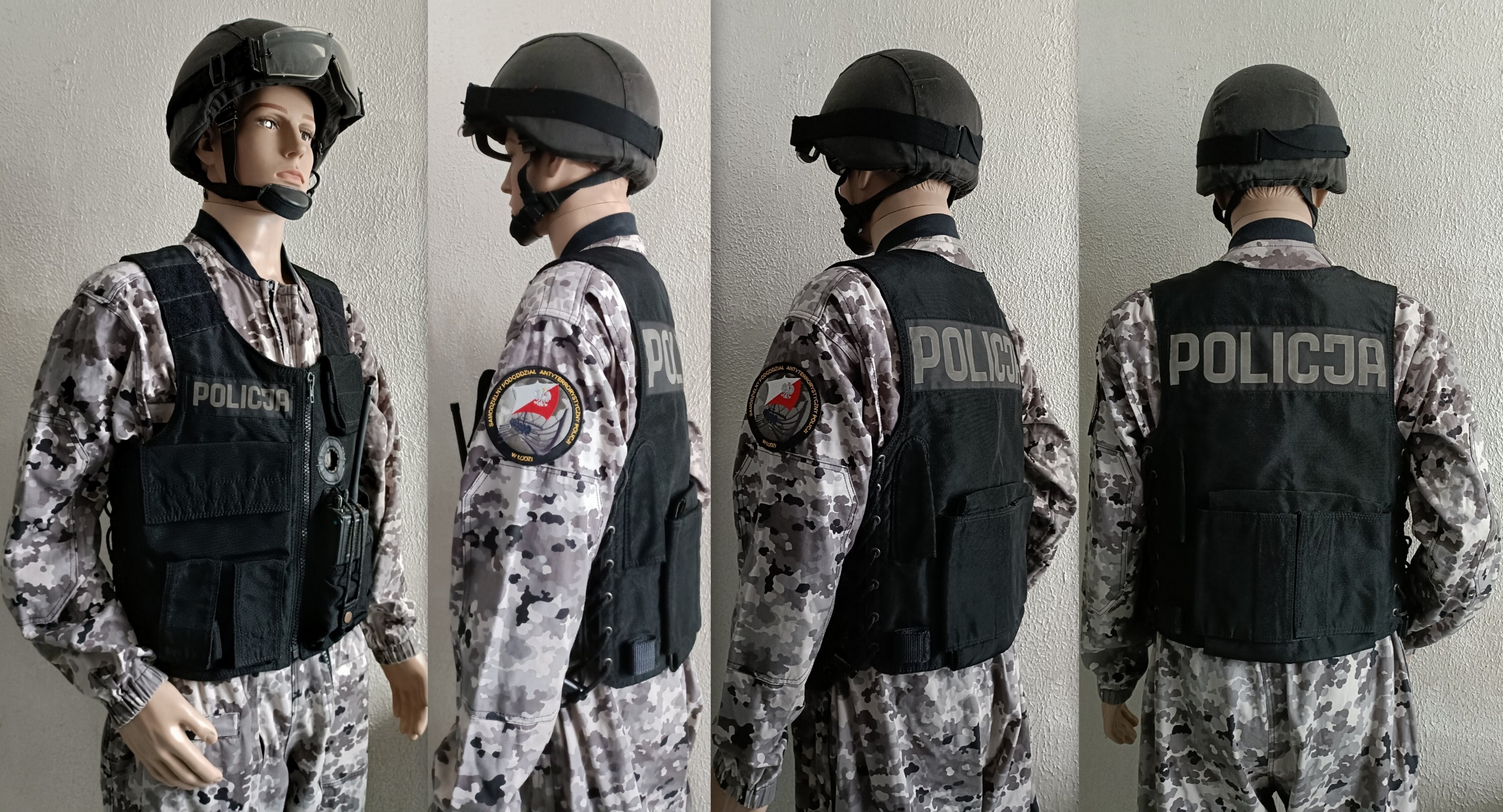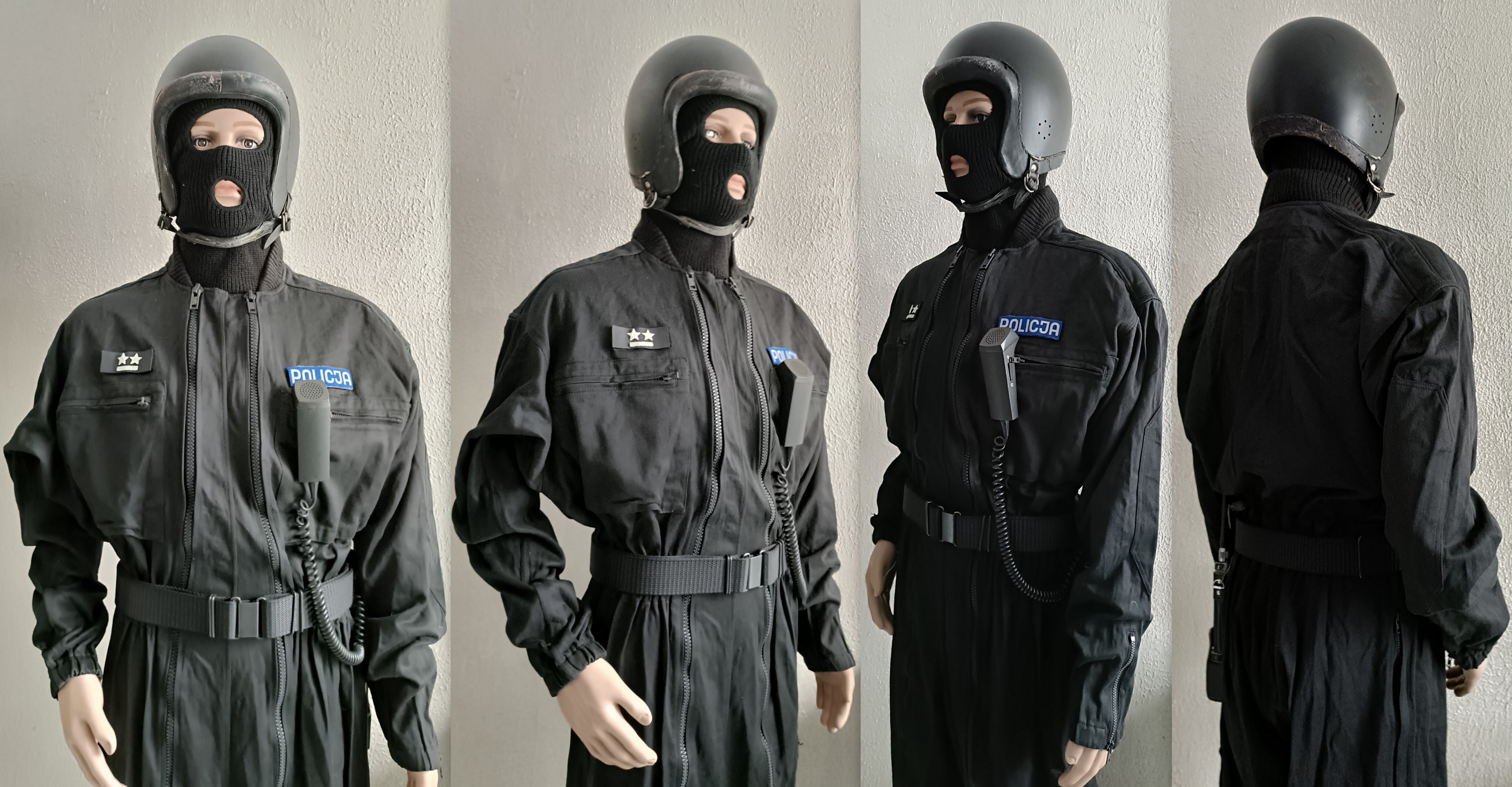 Kombinezon AT Moratex Policja z Kamizelka taktyczną Polskór. HEŁM KOMPOZYTOWY BK-4/M PIORUN II . Radiotelefon Ericsson MPA