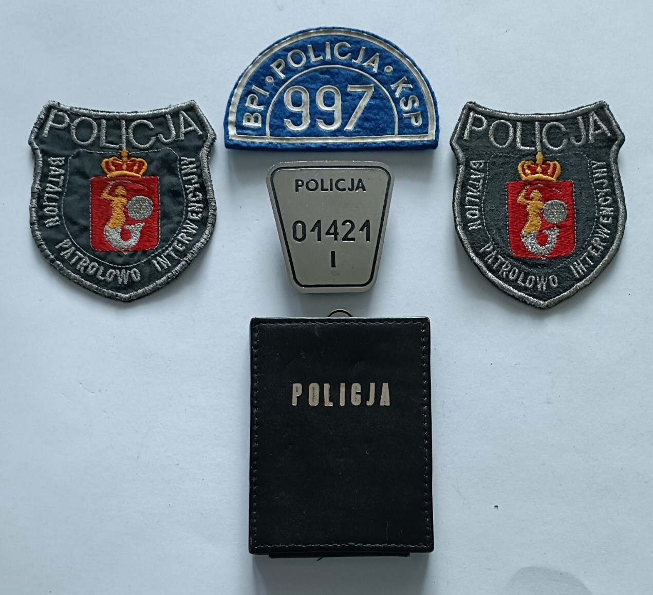 Odznaka POLICJA z numerem służbowym KSP Warszawa KWP Piła KWP Zielona Góra KWP Płock