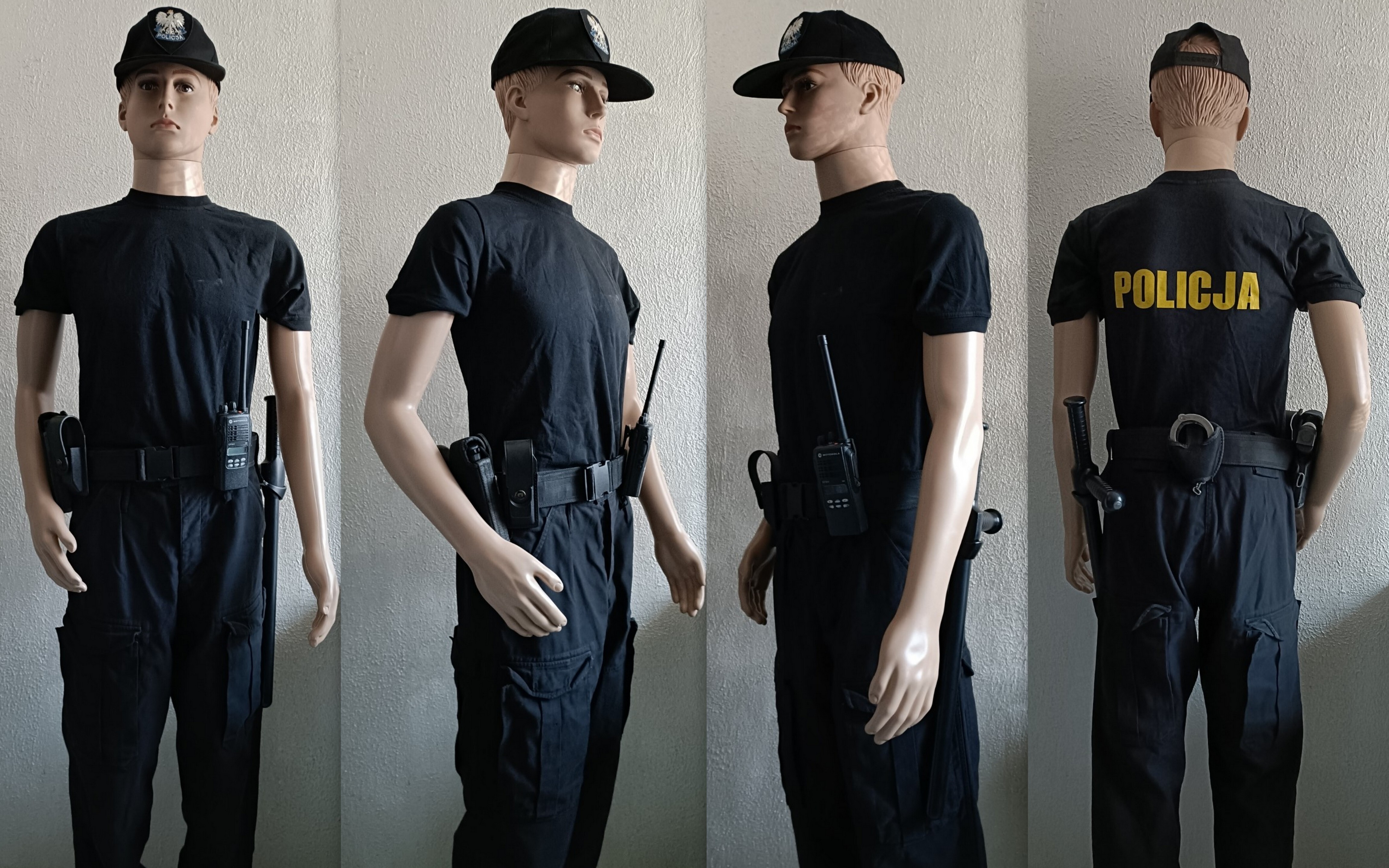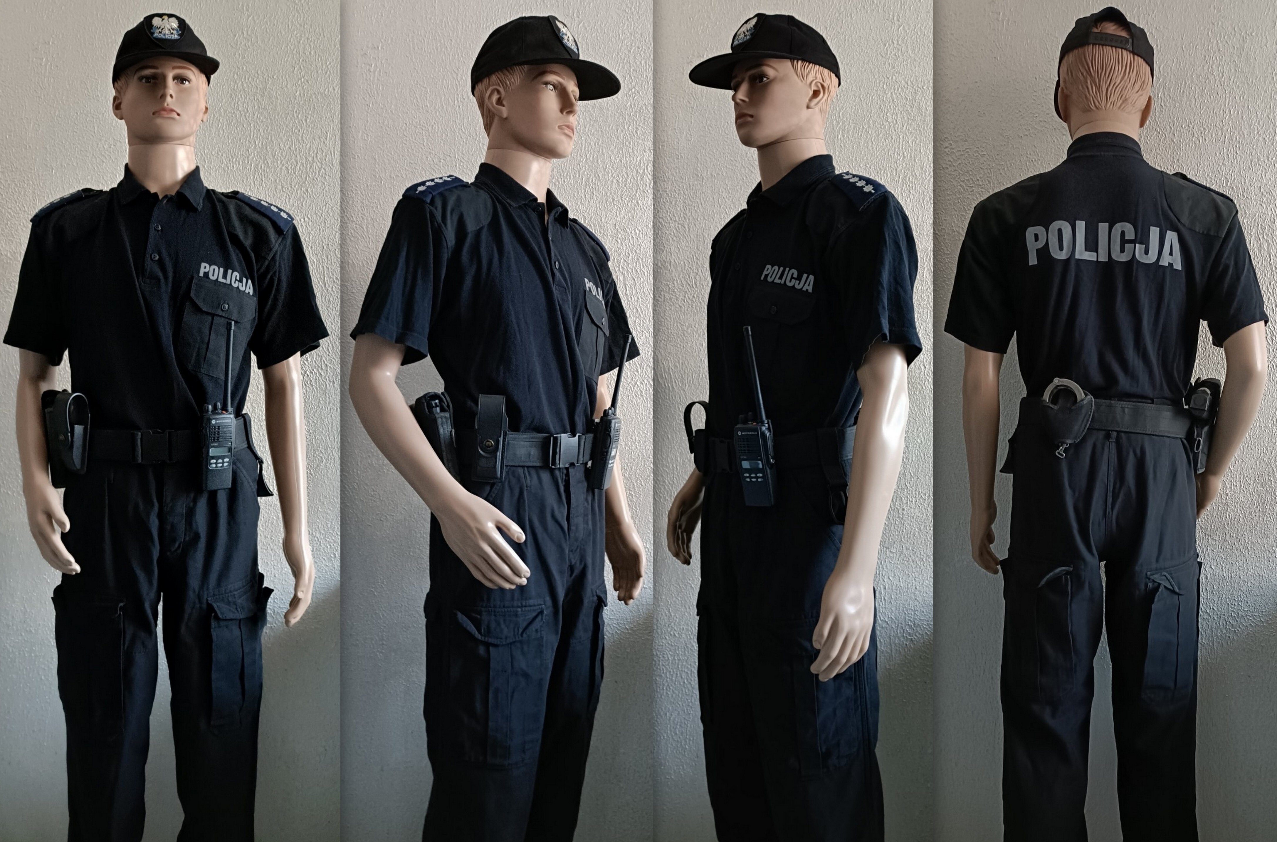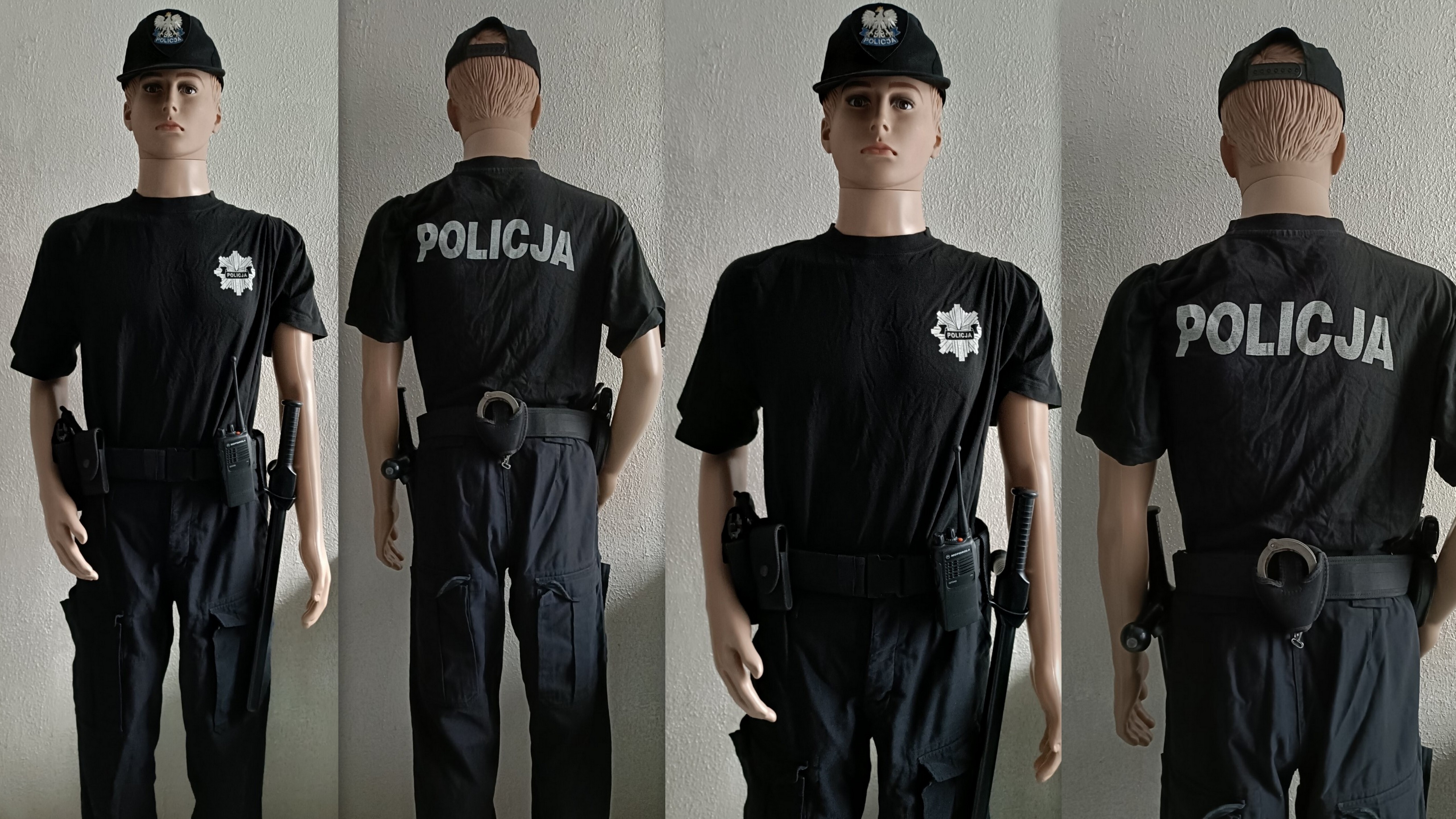 Koszulka polo Policja noszona do spodni czarnych moro.