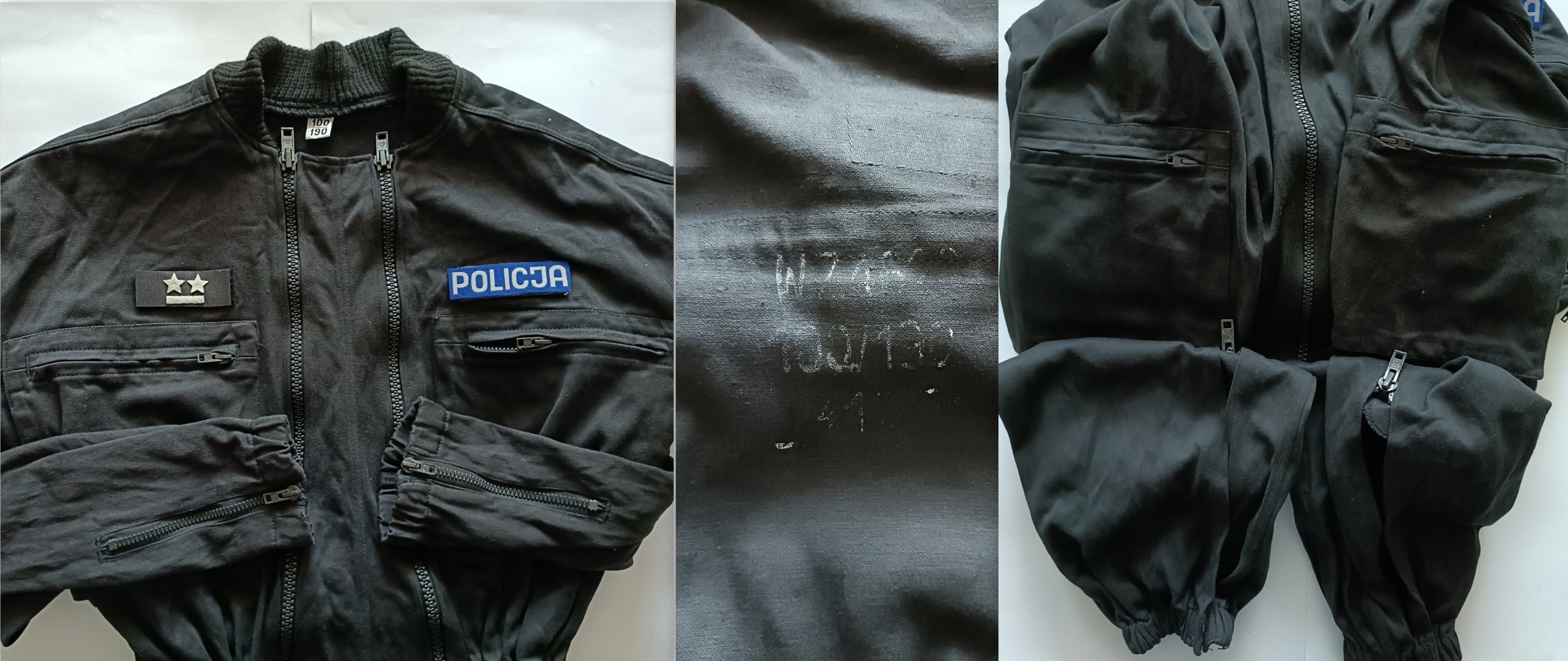 Olimpijka Policja, rozmiar 108/180. Czapka Policja Rozmiar 57. Wydana w 1999 na wizytę Papieża w Gdyni/Sopocie.