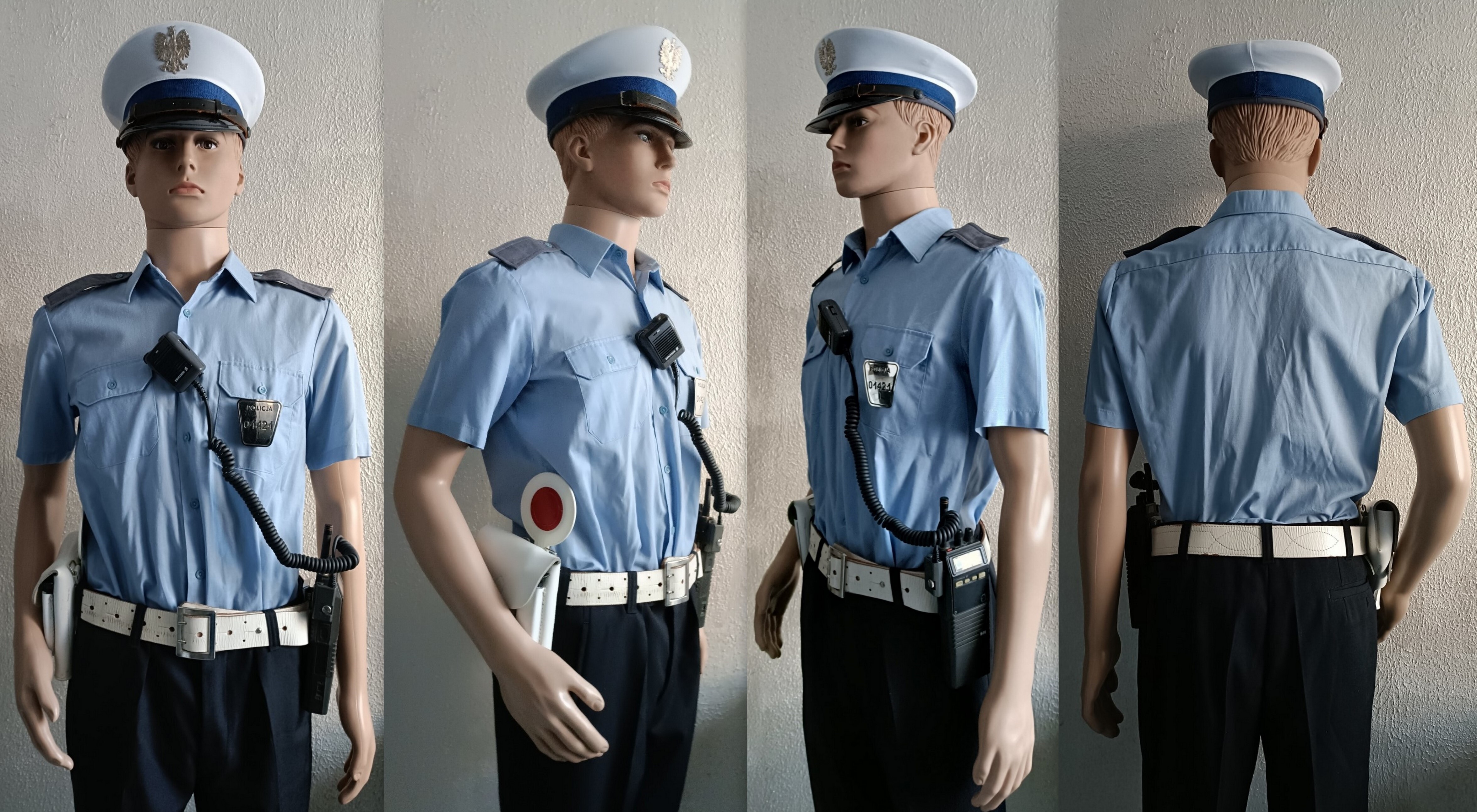 Sylwetka policjanta KRP, dzielnicowy/PPI w Olimpijka Policja, rozmiar 108/180. Czapka Policja Rozmiar 57.