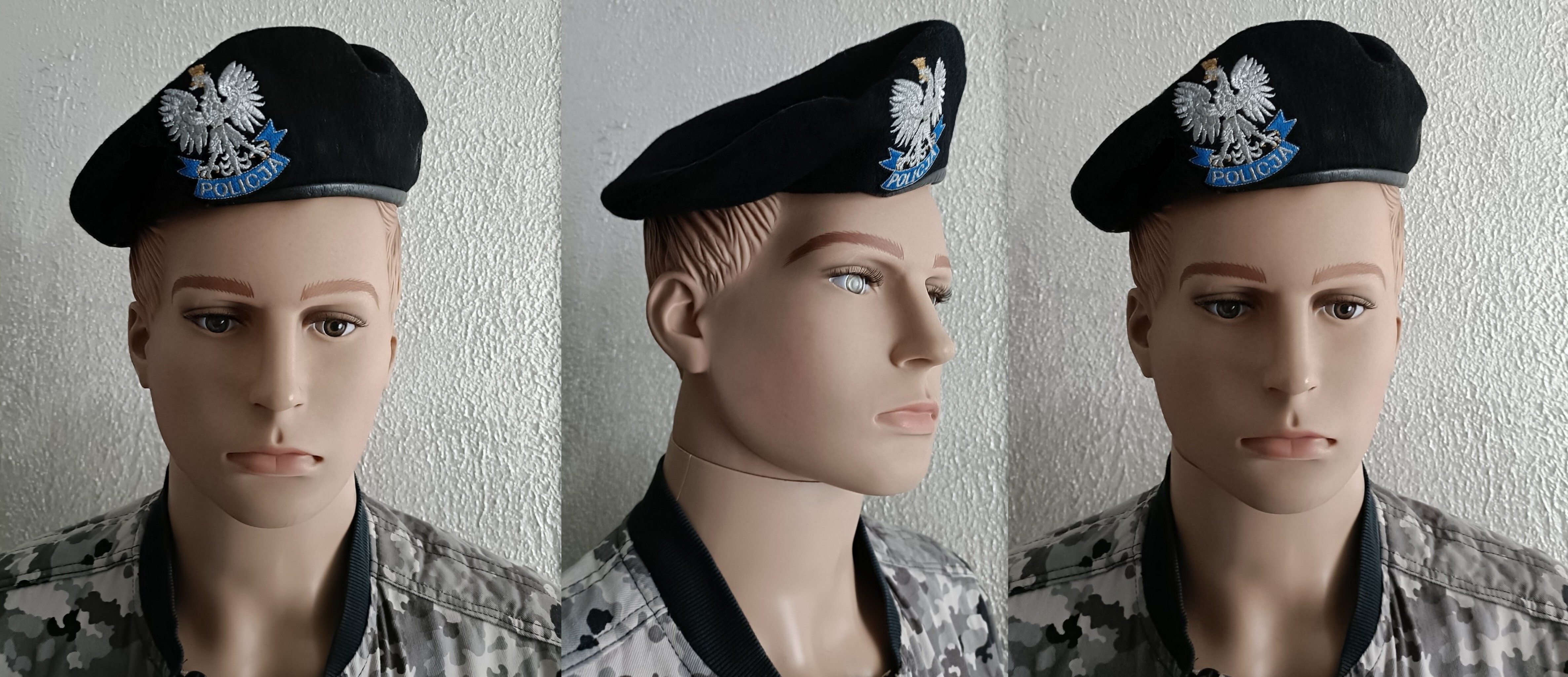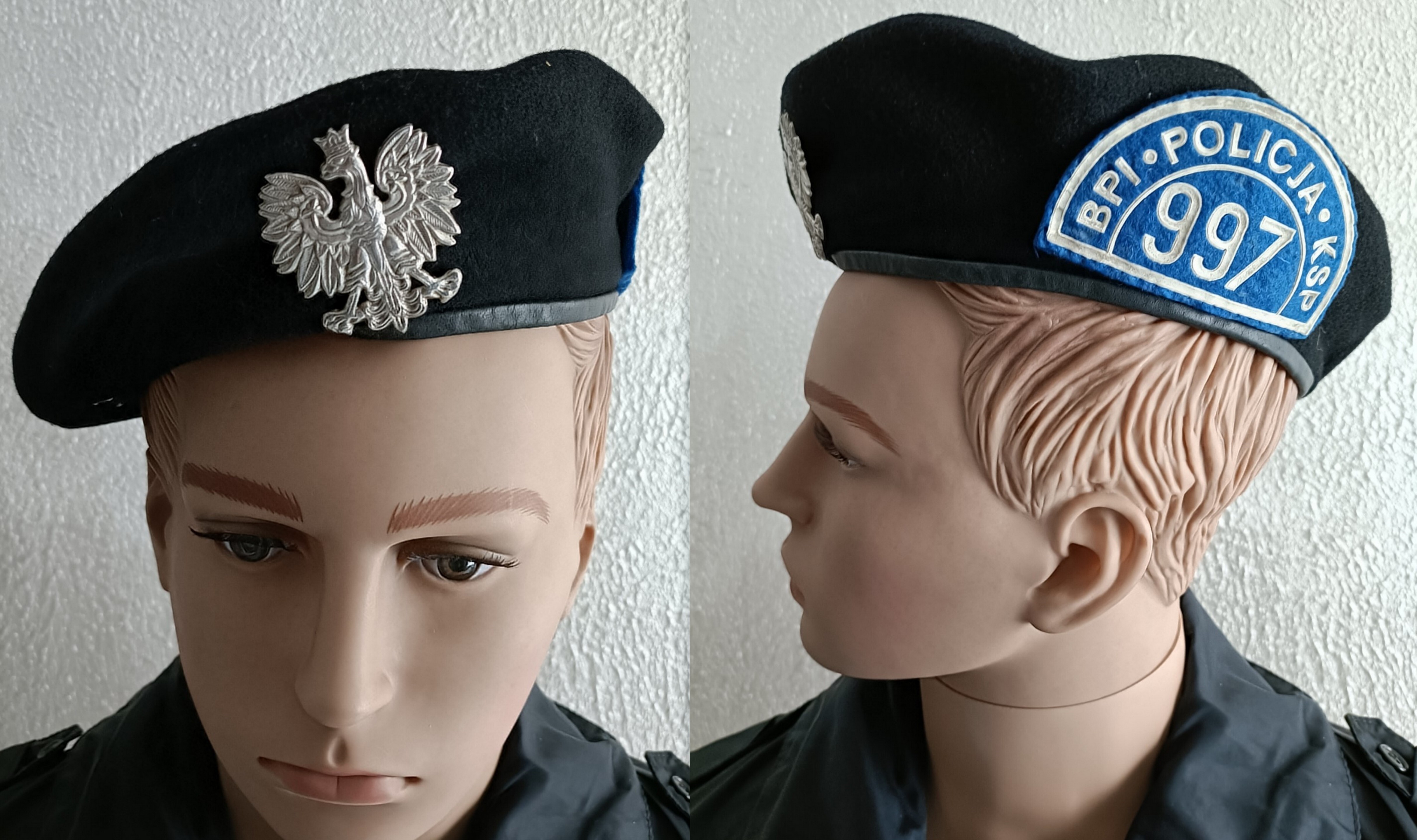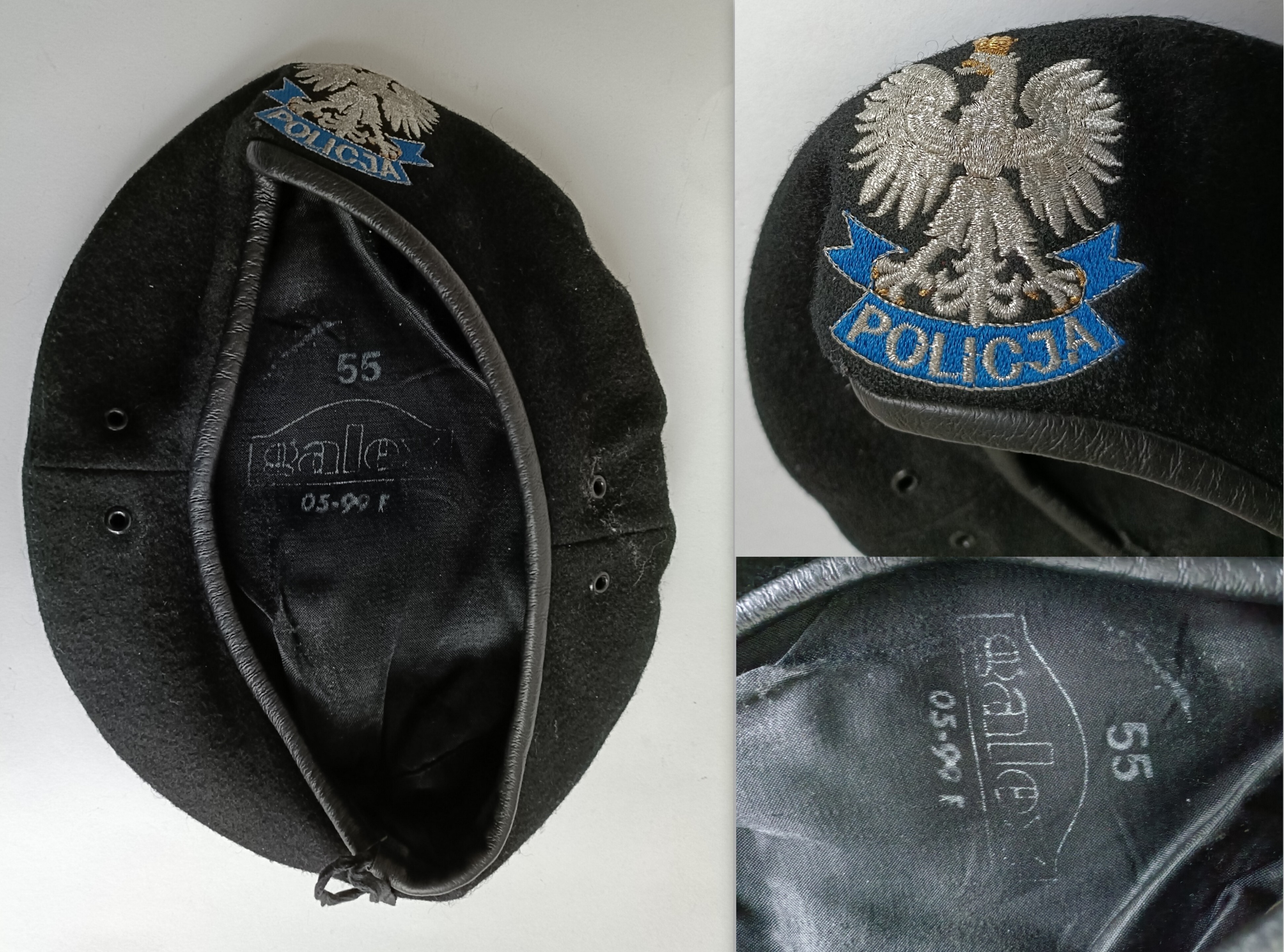 Beret czarny z haftowany orłem, z napisem Policja, z roku 1999 firmy GALEX