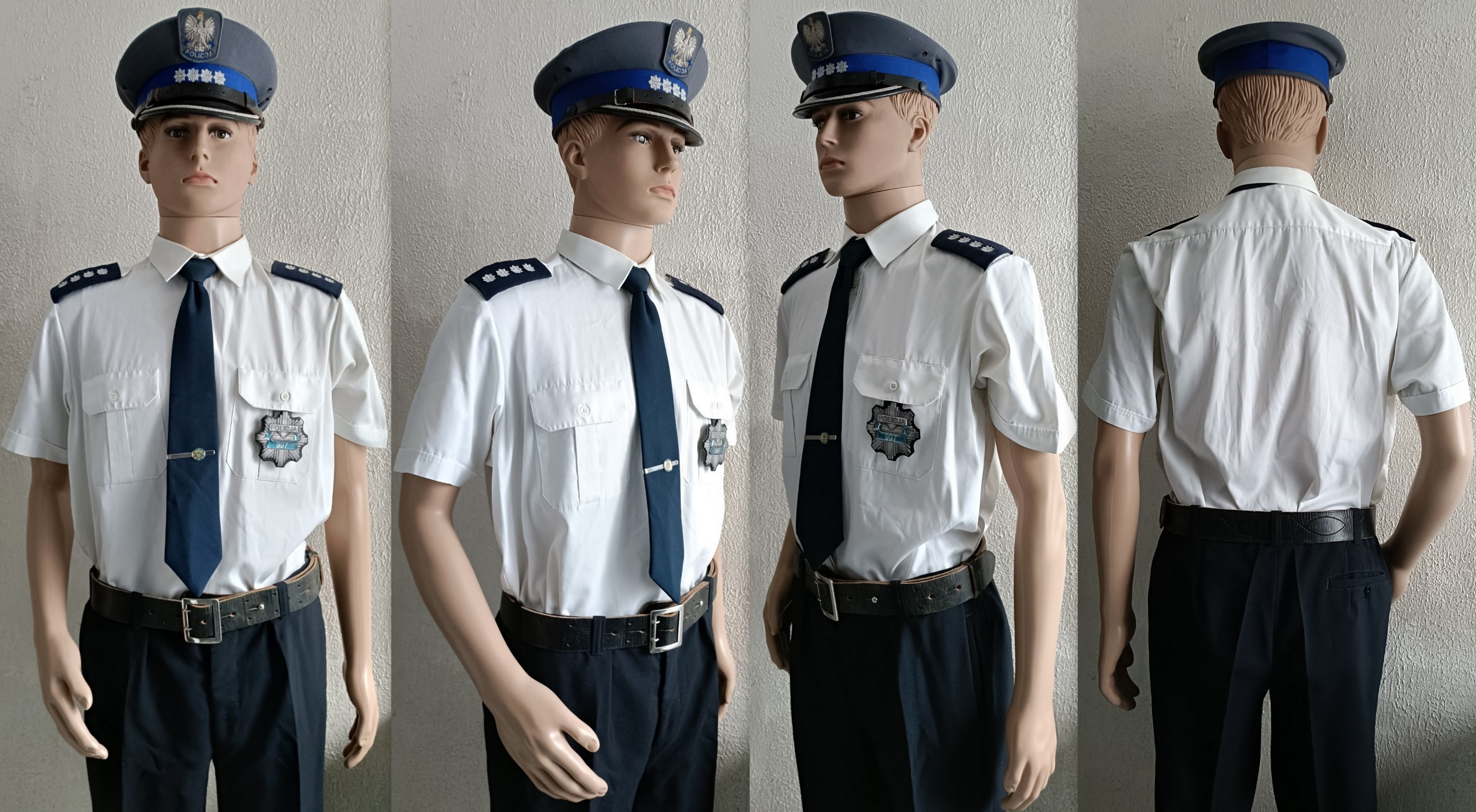 Sylwetka nadkomisarz Policja lata 90/2000. Koszula biała krótki rękaw. Wólczanka
